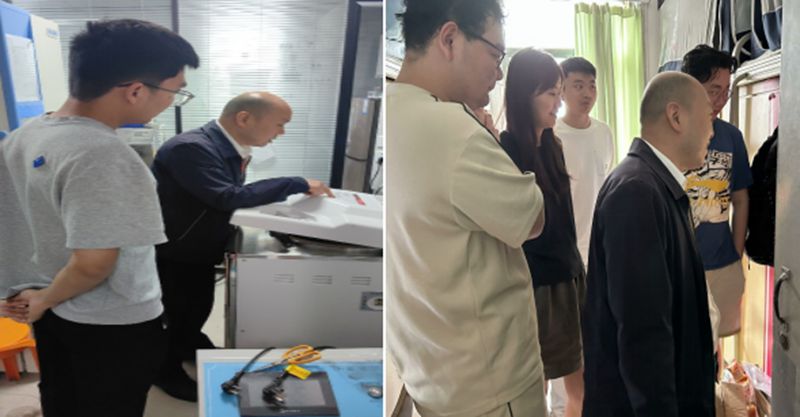 江安所辖实验室开展安全检查,着重检查实验室的用电安全、压力设备等进行了检查,并查阅了各课题组值班记录等的开展情况。中午,李天友等在辅导员李忆雯、付率等学工老师的陪同下,走访了部分学生寝室,看望学生并了解学生寝室消防安全情况。下午,李天友、李德富等学院领导陪同学校安全检查组检查了望江实验室。