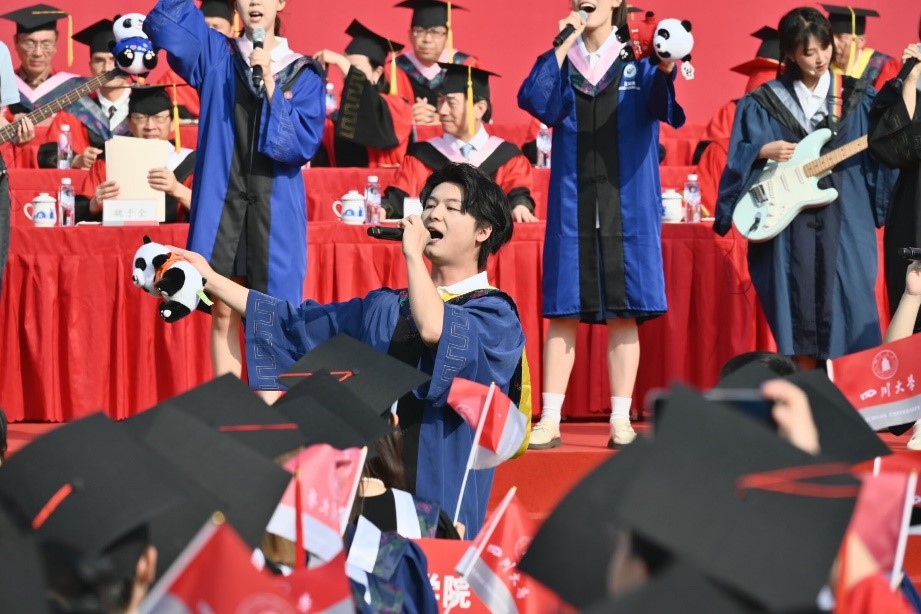 研究生毕业生代表黄皓毅同学在发言中回顾了在川大的求学时光,感谢母校的培养、老师的教导、同学的帮助、家人的支持。新征程上,川大学子将以“海纳百川”的胸襟,怀揣过硬本领,不忘初心、勇担使命,为强国建设、民族复兴贡献川大力量。