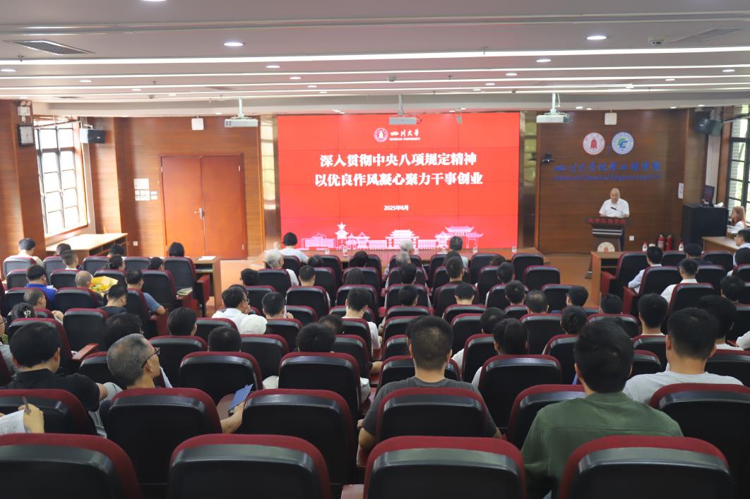 李天友面向全体与会党员作《深入贯彻中央八项规定精神以优良作风凝心聚力干事创业》专题党课,并开展中央八项规定精神警示教育。他表示,学院全体党员要立足职能职责,切实把学习教育成果转化为干事创业的实际成效,为加快建设一流化工学院提供有力保障。