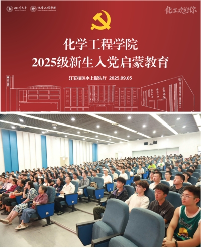 九月迎新季,筑梦正当时。为引导新生筑牢理想信念根基,深化对党的认识,明确入党流程,激发政治热情,于2025年9月5日下午在江安校区一教A水上报告厅,组织开展2025级新生入党启蒙教育主题活动。参加本次活动的有校关工委思政工作指导部傅师申、侯筑、王雅梅,党建工作指导部陈明惠;青年教师工作指导部兼学院关工委兰先秋,学院关工委梁明征、傅运清、马丽芳、何泽超、陈志,学院综合科科长杨谨瑗,2025级新生辅导员、本科社区党支部书记李珍珍,2025级辅导员、本科社区党支部副书记付率以及近400位2025级化工新生。