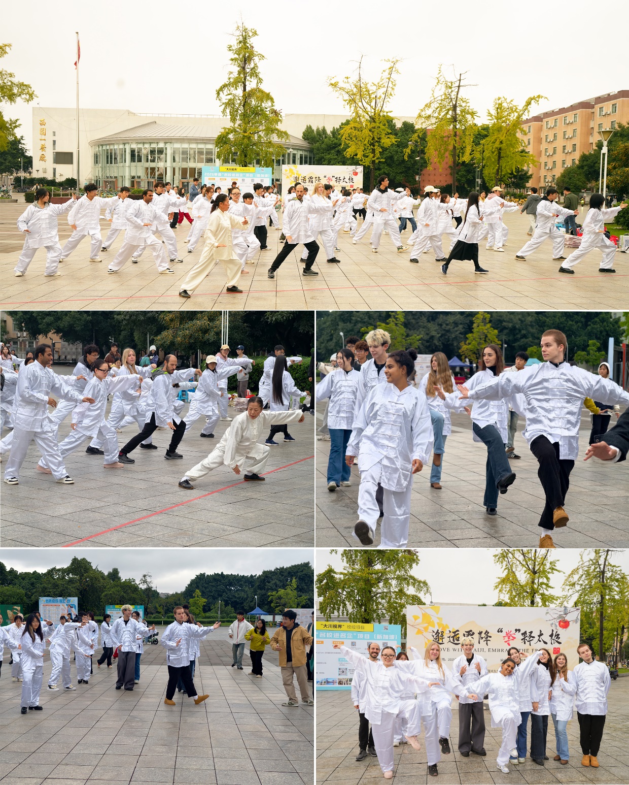江安校区青春广场举办了“邂逅霜降,“拳”释太极”主题太极活动,来自多个学院的留学生和本校本、硕、博学生共同参与。
