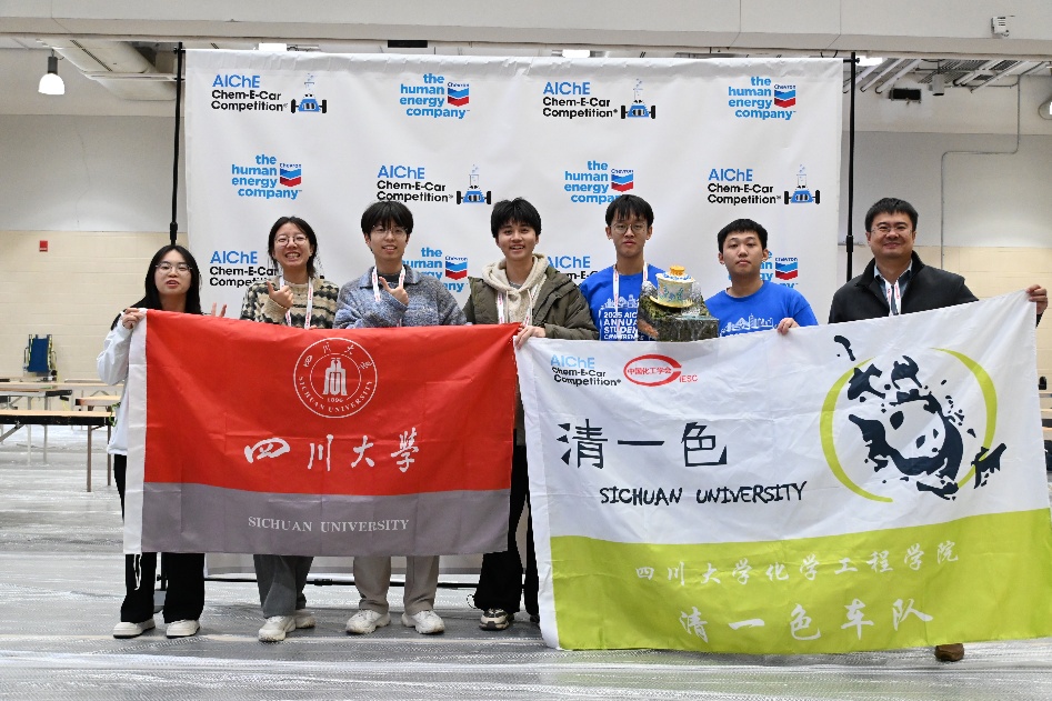 清一色车队”代表中国参赛。在王缘、吴振国两位老师的指导下,队伍为本次全球赛设计了全新的锌-空气电池动力系统。比赛过程中,团队面临控制试剂不足的突发状况,在康毅进老师的协助下积极筹措资源,并果断调整控制方案,最终凭借稳定的现场发挥,以0.617米的精准制动距离,在53支参赛队伍中斩获全球第十名的优异成绩。