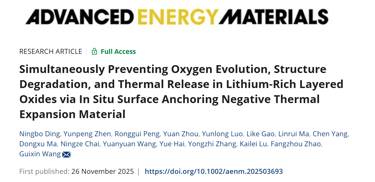 王贵欣教授团队在《Advanced Energy Materials》期刊发表了题为“Simultaneously Preventing Oxygen Evolution, Structure Degradation, and Thermal Release in Lithium-rich Layered Oxides via in Situ Surface Anchoring Negative Thermal Expansion Material”的研究论文(//doi.org/10.1002/aenm.202503693)。该论文第一作者为污污漫画