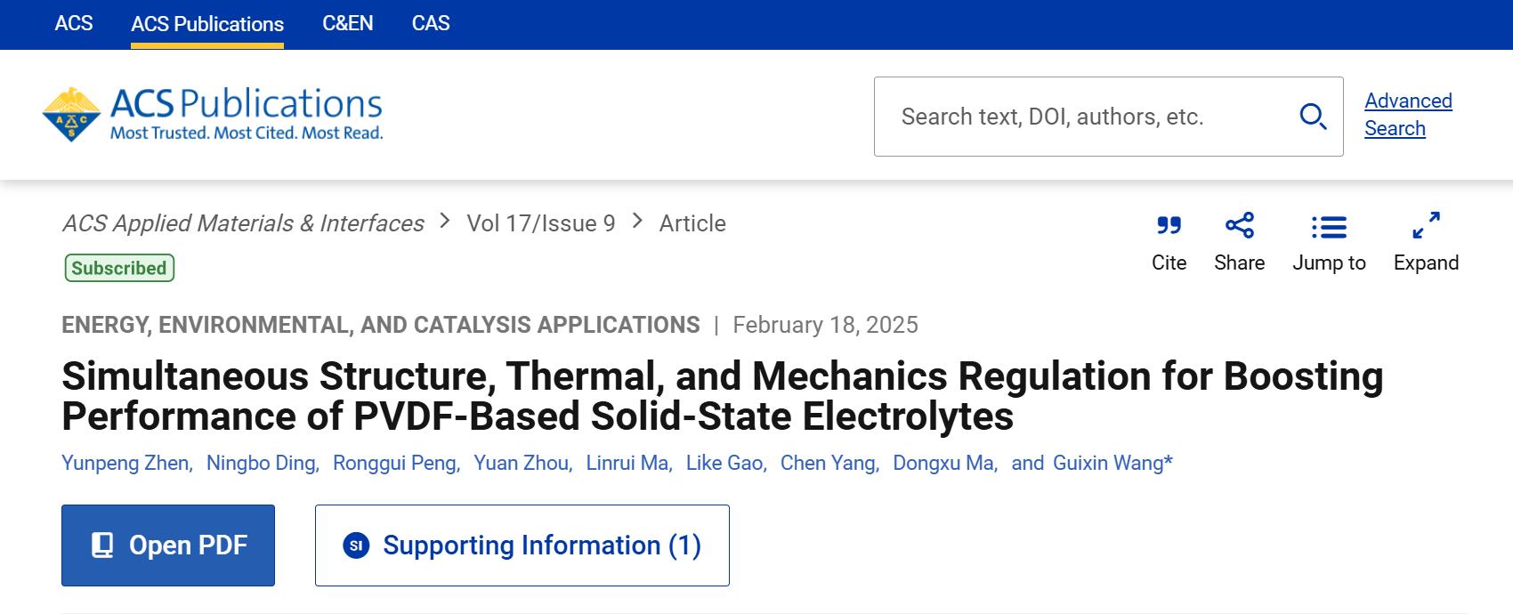 此外,在固态电解质领域,该研究团队基于结构、界面、热和力的协同调控机制,设计开发了负热膨胀材料LiZr2(PO4)3改性的PVDF基复合固态电解质,在不加任何液态电解液和压力的情况下,将制备的新型复合固态电解质与金属锂和不同正极材料组装成全固态电池并展现出好的性能(使用该电解质的Li||LiFePO4固态电池和Li||LiNi0.8Co0.1Mn0.1O2固态电池在25 ℃和0.5 C下的可逆容量分别为133.9和171.6 mAh/g,循环300次和200次后容量保持率分别为90.4和87.7%,循环300 h后的应变分别降低37.7和33.6%。而且,在大电流和高温下也有好的性能),为固态电解质的改性和低成本高性能固态电池的应用提供了新策略和新进展。相关研究成果发表在《ACS Applied Materials & Interfaces》(//doi.org/10.1021/acsami.4c22175)上,该论文第一作者为污污漫画