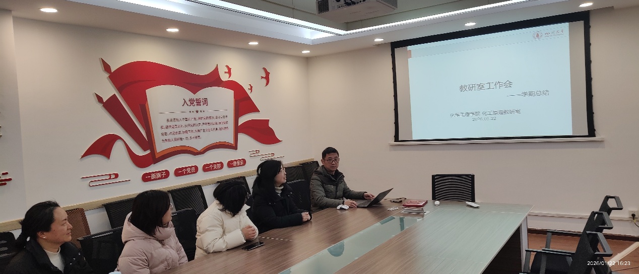 化工原理教研室在学院227会议室召开学期教学总结研讨会。会议由余徽老师主持,与会教师围绕课程建设与教学质量展开深入交流。