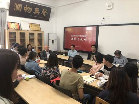 “教授开放日——与大三学生谈读研教授见面会”在江安校区三舍活动室顺利召开。学院教授委员会主任李象远教授、党委副书记姜利寒老师、蒋炜教授、杨秀山副教授、刘壮副教授,及2015级辅导员郭鑫楠、王苏宁老师和30余名2015级学生参加了本次活动。
