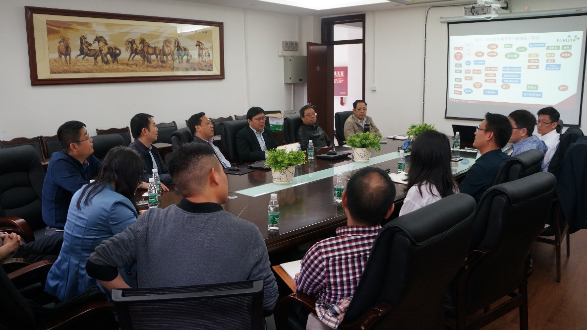 唐盛伟副院长简单介绍了学院参会人员情况,代表学院欢迎福华集团唐煌总监一行莅临化工学院交流洽谈科研合作事宜。福华集团唐煌总监介绍了集团的产业发展现状及未来产业发展方向。双方针对福华集团的产业发展、技术细节等进行了充分详细的交流。并对一些关键技术进行了讨论。双方就磷化工产品深加工、氯化、氟化、硅产品等领域的新技术与新型过程设备开发、新产品开发等科技合作领域的合作达成了初步意向。双方一致同意进一步加强合作与交流,促进产学研究深度合作。