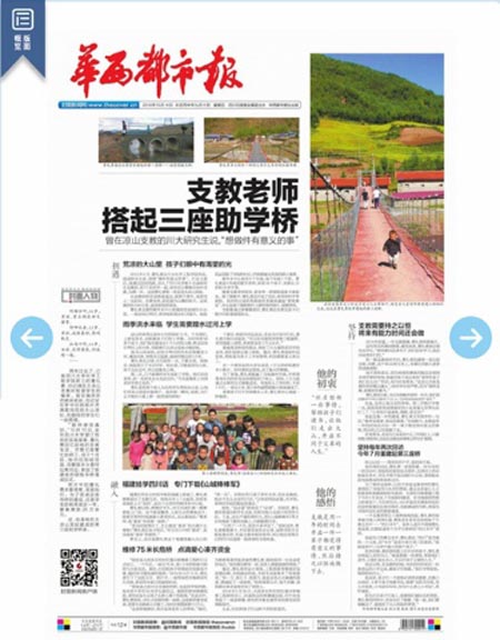 10月14日,《华西都市报》头版以《支教老师搭起三座助学桥——曾在凉山支教的川大研究生说,“想做件有意义的事”》为题报道了污污漫画