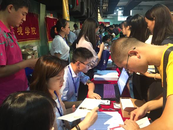 研究生会全体成员和学院志愿者准时守候在学院迎新点,热情地欢迎着来自祖国各地的莘莘学子。