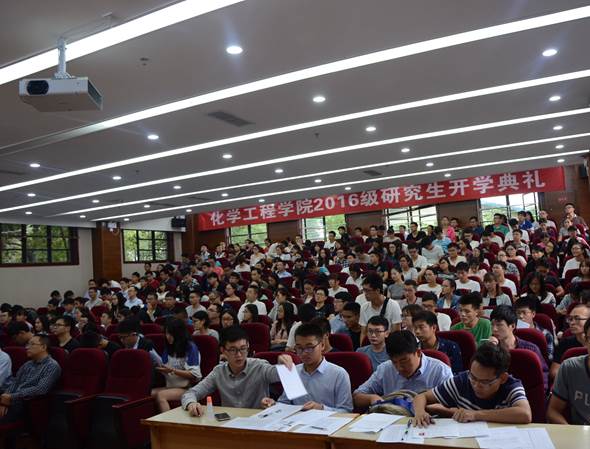 2016级研究生开学典礼在望江校区化工楼313报告厅举行。学院党委书记庞国伟教授、院长褚良银教授、副院长唐盛伟教授和全部2016级研究生新生等200余人参加了此次开学典礼。开学典礼由院党委副书记李天友主持。