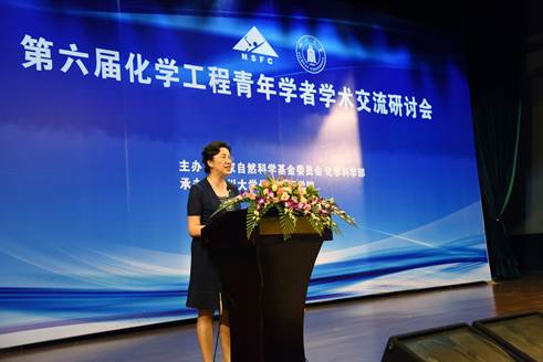 发展建设的国家自然基金委化学科学部致以最诚挚地问候。随后,徐书记说到,此次会议对青年学者的创新思维培养、基础科学问题凝练和科研思想塑造起到了很好的示范效应,对培养和造就化学工程领域有潜力的优秀青年领军人才具有积极意义。最后,她希望各位参会青年学者能够学为己用、多向学术泰斗们请教学习,真正将此次研讨会当作学术交流的重要平台,当作沟通发展的良好翘板,祝愿本次大会取得圆满成功,祝各位与会嘉宾身体健康!