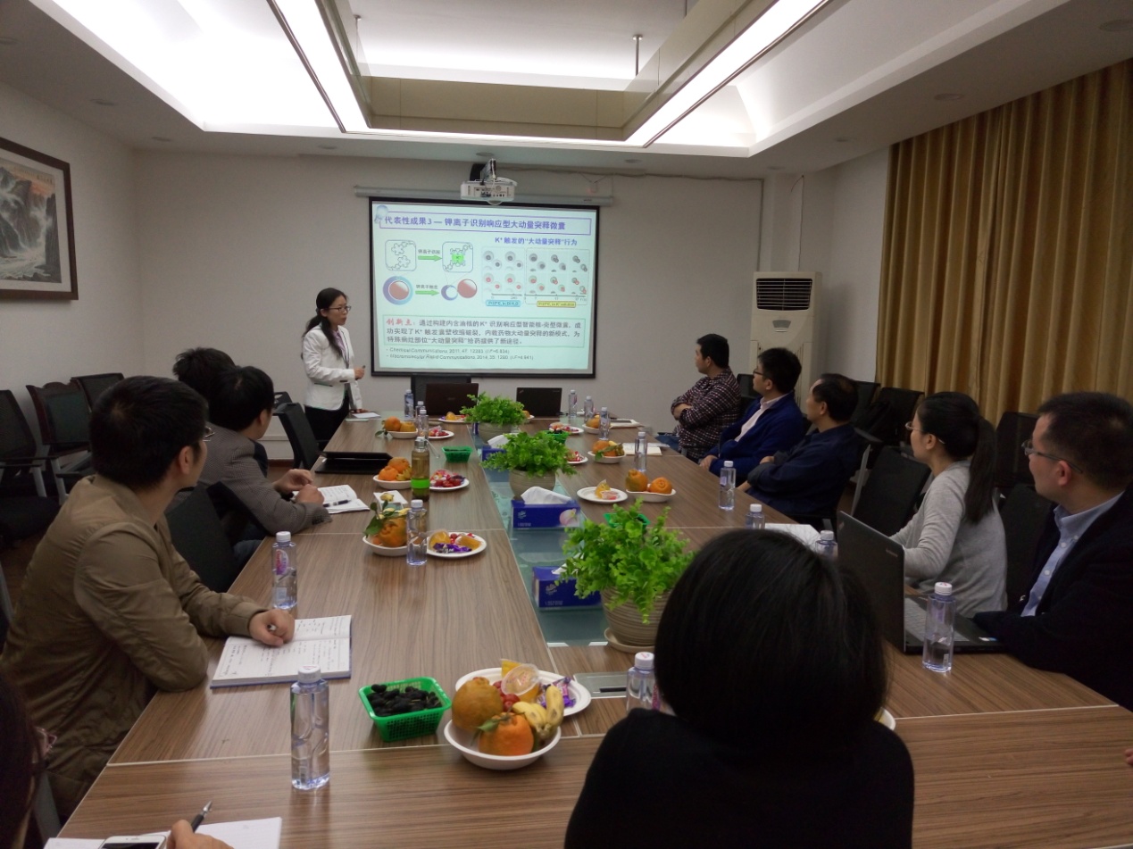 本期“化工青椒学术沙龙”研讨会中,巨晓洁教授以“智能化控释给药系统的创新构建及其传质过程的强化”为题做了学术报告,介绍了报告人在环境响应型智能控释系统的创新构建、以及如何提高控释传质过程可调控性和强化控释传质过程传质动量等方面的部分研究成果。朱英明博士以“二氧化钛基光催化剂的改性和光催化性能研究”为题做了学术报告,基于对TiO2光催化剂等的改性研究,介绍了太阳能的利用与转化研究,同时介绍了钙钛矿太阳能电池稳定性研究中添加晶体交联解决方案。在两位老师的精彩报告后,与会老师结合各自学术背景对其学术工作展开了热烈讨论与交流。