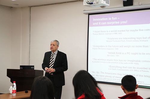 学生中如何发挥作用、赢创工业集团为员工提供的工作转换机会如何实施等问题与Dr. Peter Nagler、冯兢博士和陈愚先生进行了积极的互动交流。