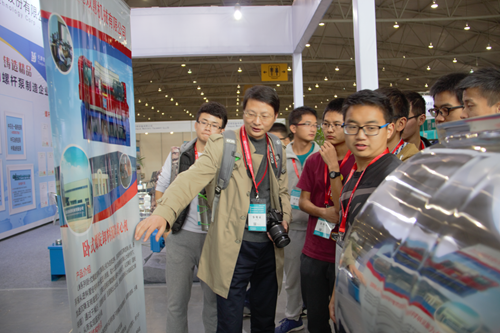 参加本次活动的同学涵盖了化工学院的各个专业,在保证安全、纪律和不影响正常上课的前提下,于11月4日至6日三天时间内分别分成三个批次即每天一批前往展会现场参观学习,每一批次的参观时间为2个小时。同学们看见庞大而繁多的设备发出连连感叹,指导教师也是对同学们进行了十分仔细的讲解。在现场授课的过程中,老师一面是和同学们讲解设备的运作方式,另一方面就会和同学们讲述书本当中的一些具体原理,帮助同学们将书本上的知识与自己眼前的实物相联系起来。比如在参观一个流体输送机械时,老师就会联系自己的学科和同学们解释,吕松老师会向过控专业的学生说明这个泵的输送确实很适合自己的生产,但是承强老师就会引导同学们思考这个泵如果用于药品生产还缺少一个清洁灭菌的装置。