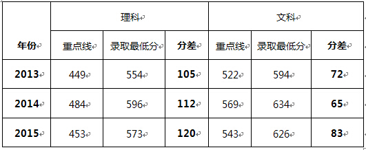 在贵州省录取考生372名,本科第一批次提档分理科573分、文科626分,分别高出重点线120分、83分,环比增长8分、18分。其中,理科平均分高出重点线135分。