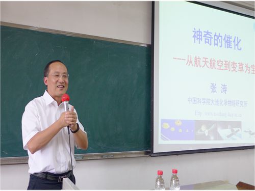 80余名本科生同学带来一场精彩的讲座。陪同张涛院士前来的还有大连化物所研究生部主任熊博晖研究员、研究生部招生主管熊川男副研究员。化工学院院长褚良银教授主持本次讲座。