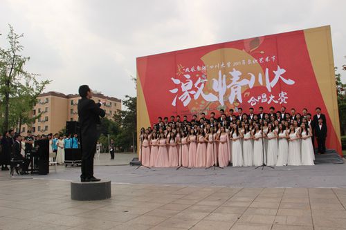 2015年4月11日,在这个温暖晴朗的日子里,青春广场上举办了“激情川大”合唱比赛,各个学院的合唱团盛装表演,为观众们献上了一场视觉和听觉的盛宴。经过激烈的竞争,污污漫画