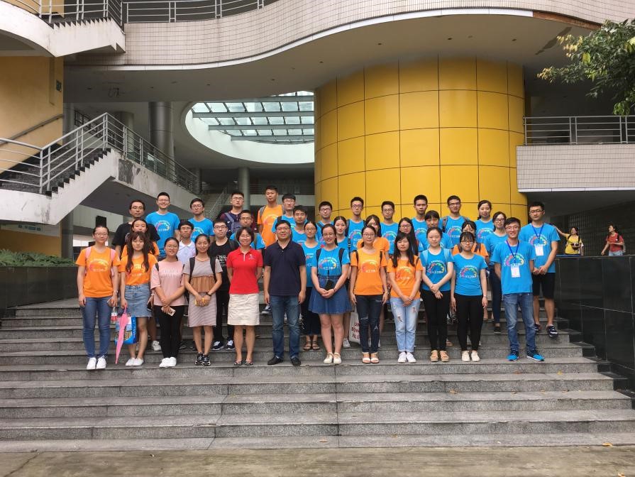7月17日下午,雨后初晴,在化工系主任袁绍军教授,化工专业实验室主任唐思扬副教授和吉俊懿副教授的带领下,来自全国各地参加夏令营同学来到美丽的江安校区化工学院工程实验教学中心参观交流。