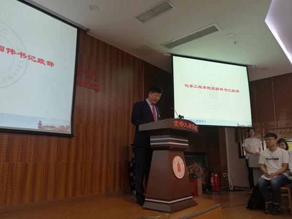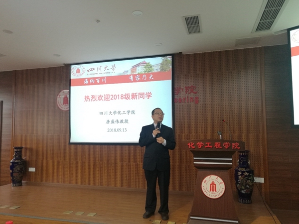 所具备的雄厚科研实力。接着,唐院长提出了新时代人才培养的新标准,期望广大新生摒弃过去被动、消极地学习,要将创新、热情融入到科研当中,主动学习,做问题的解决者,做祖国未来化工事业的接班人。同时,唐院长还表示,从事科研要从心态、能力、素质各方面入手,修文、修武、修行,有恒心、有信心、有耐心,切不可三天打鱼两天晒网。最后,他诚挚地祝愿同学们在川大快乐生活、快乐学习。