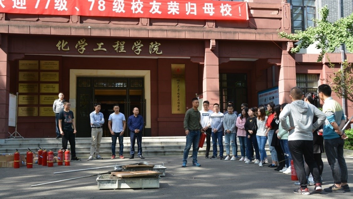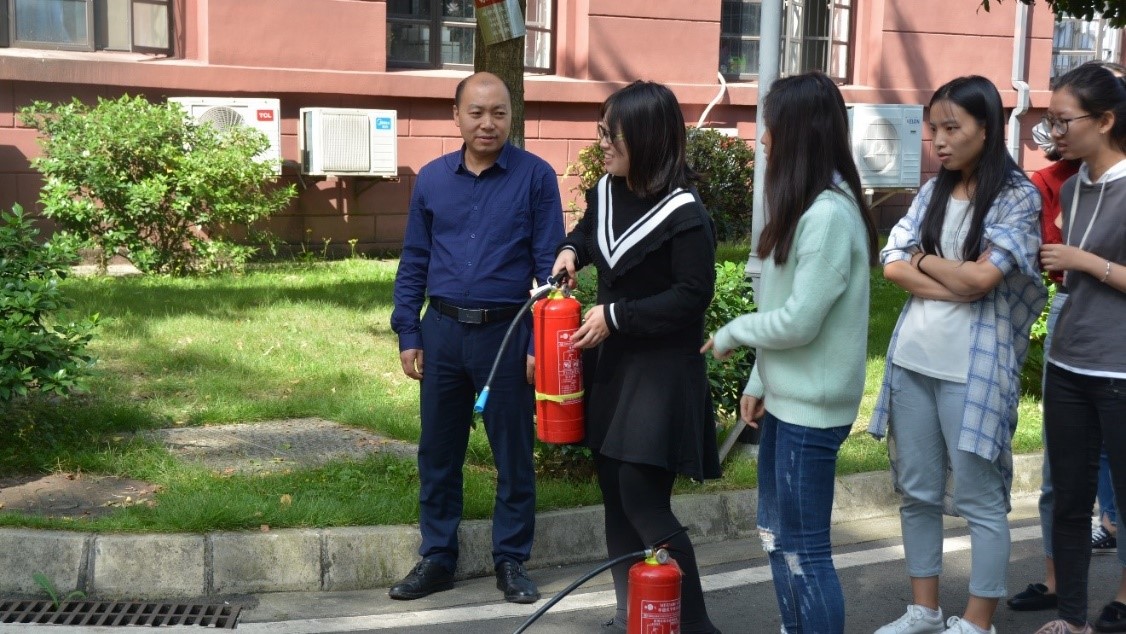 上午10点,在正行楼门前消防演练正式展开。化工学院党委副书记、纪委书记李天友和学院安全秘书胡毅老师莅临现场指导。教练详细地给同学们讲解了灭火器、灭火毯、消防沙的使用方法。在教练的指导下,同学们依次上前进行灭火操作,学习了正确的灭火操作技巧。