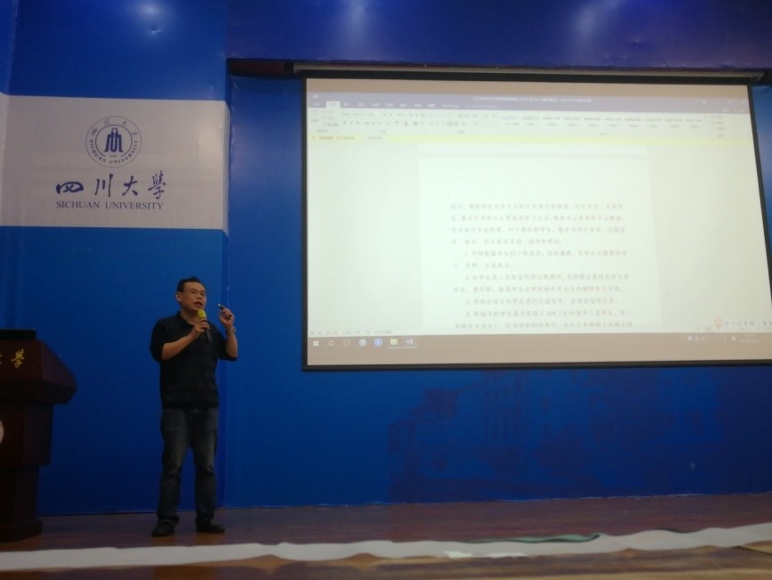 江安校区水上报告厅,制药与生物工程系主任李德富老师与化学工程系副主任党亚固老师面向全体化工与制药类本科生就本科导师制进行了宣讲。生物质资源利用协会、资源与环境微生物协会、制药工程协会和化工设计协会辅助组织了本次宣讲会。