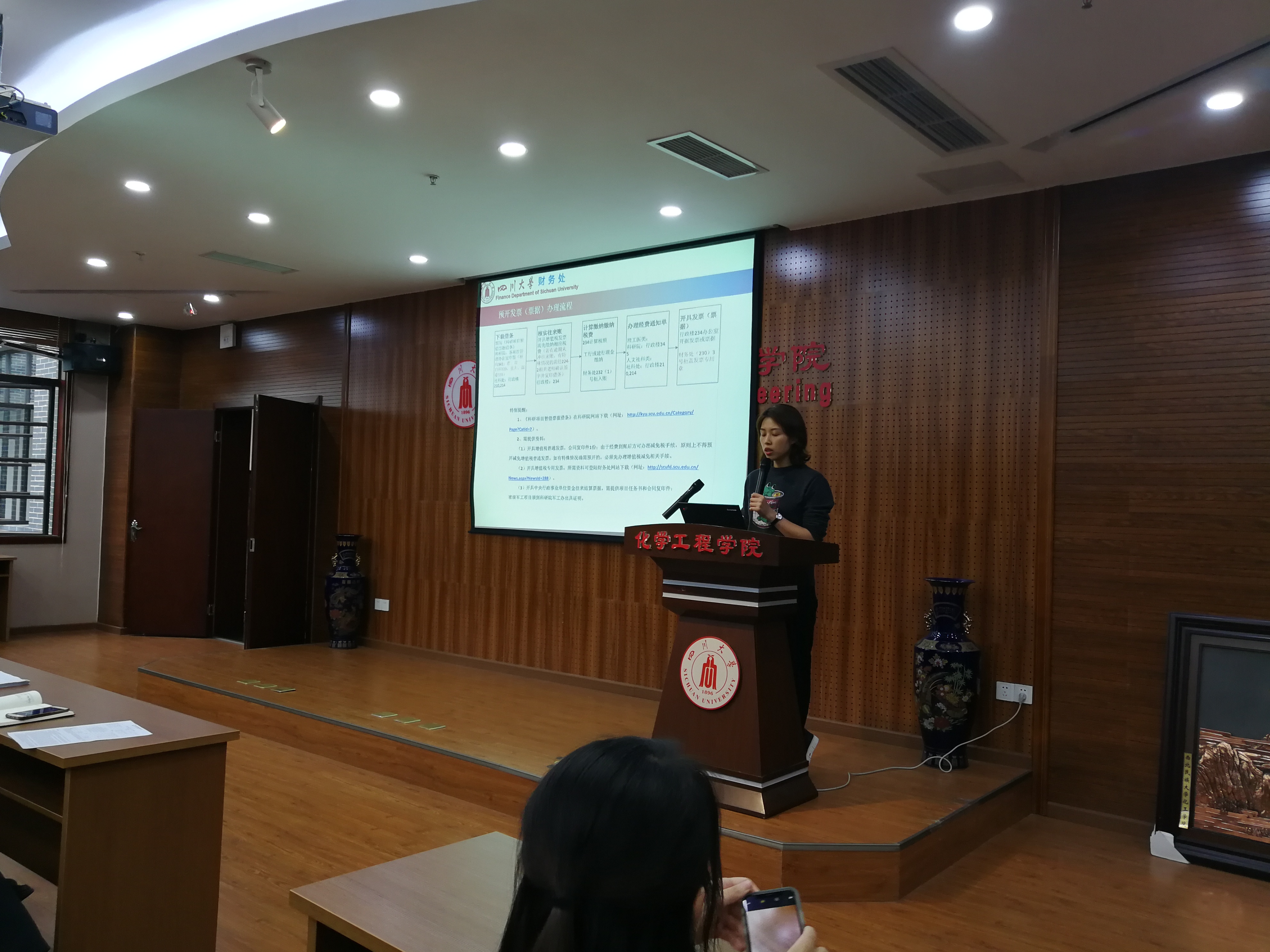 会上,财务处重大科研项目经费管理科吉利老师就科研业务相关的经费管理与报销进行了详细、全面的介绍。核算科刘秋宇老师就经费实际报销中的重点内容和注意事项作了讲解,尤其是对有关差旅、会议、出国(境)等报销中的常见问题进行了解答;预算与国库管理科万萍老师对2018年10月起个人所得税的变化等相关问题进行了解答。