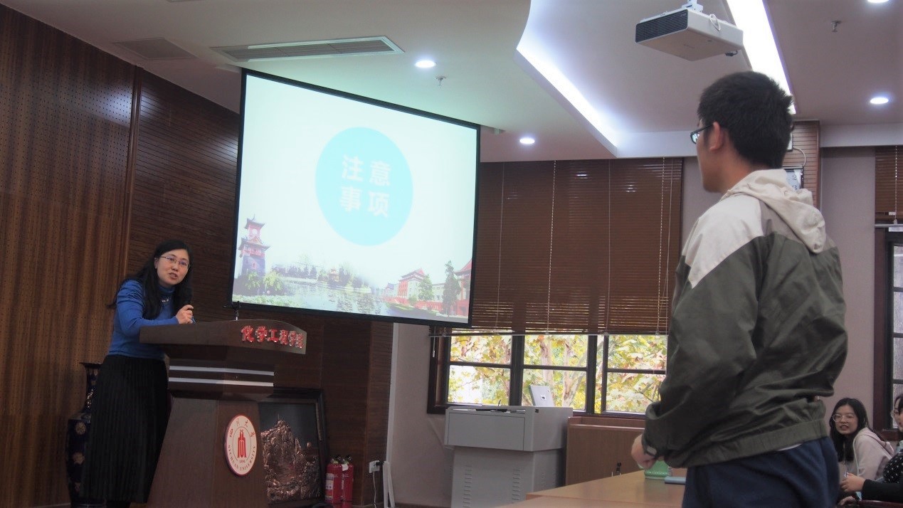 下午15:00,来自化工与制药专业的同学们汇集于正行楼313报告厅。首先,主持人师璐简要介绍了本次参观活动的流程和内容。接下来,谢老师给大家说明了本次活动的重要意义以及参观实验室的安全要求。谢老师讲到,化学工程与工艺专业和制药工程专业入选全球工程教育“第一方阵”,并位列软科世界一流学科排名42位,说明学院本科教育和研究水平具有较高的国际水平。作为化工专业学生应该感到光荣和自豪,应该了解学院的历史发展、文化氛围和研究实力。谢老师希望大家在参观过程中多听多看多学习思考,才能有所收获。随后,新同学们带着兴奋与好奇的心情,开始了一个小时的参观活动。