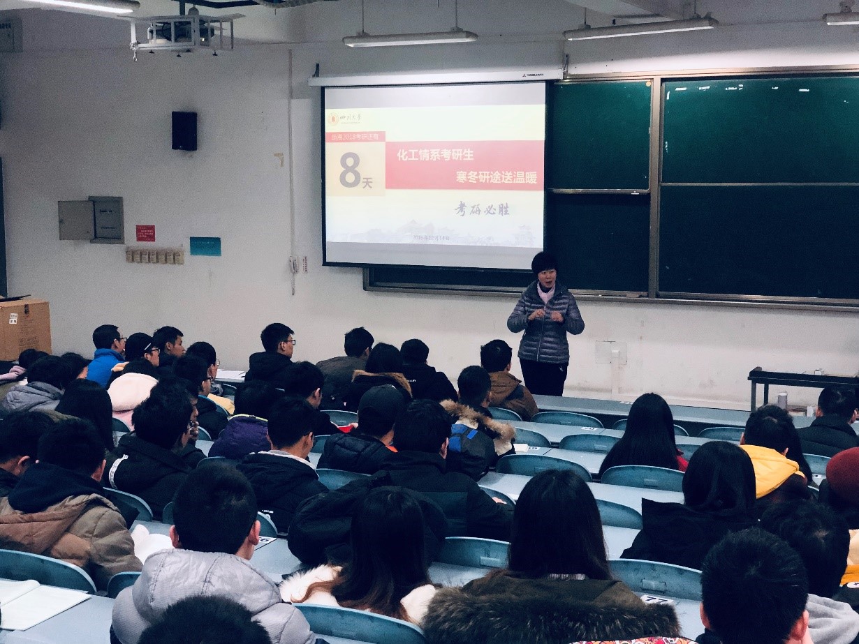 2018年12月14日,“化工情系考研生,寒冬研途送温暖”活动在江安校区综合楼C506成功举办,化工学院党委副书记姜利寒,辅导员郭鑫楠、王瀚黎为污污漫画