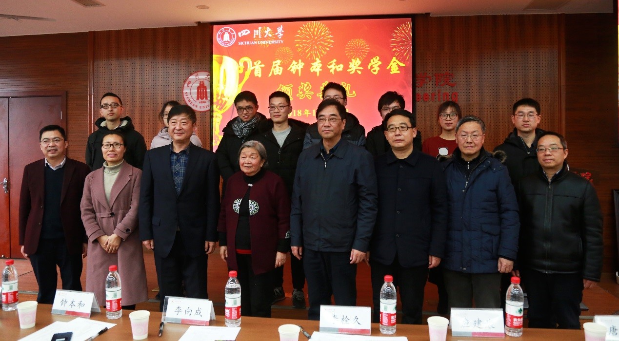 “钟本和奖学金”获奖学生的决定》。在老师和同学们热烈的掌声中,校李向成副书记、李栓久部长、院庞国伟书记及钟本和教授为10位获奖学生颁发奖状并合影留念。
