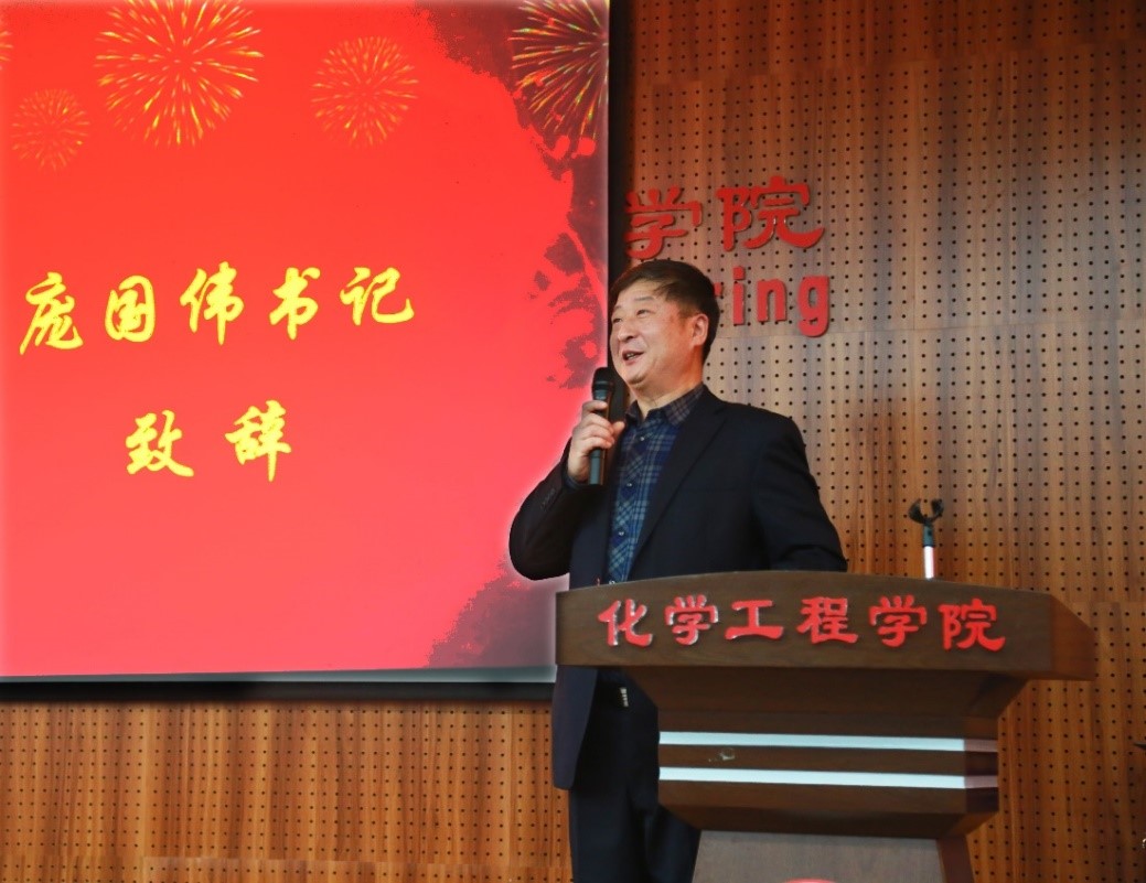 党委书记庞国伟首先致辞,他对以钟本和教授为首的磷化工团队为青年学子设立此奖学金表示衷心的感谢,并指出“钟本和奖学金”凝聚了磷化工团队的心血,必将指引和激励广大青年学子正确认识化工、热爱化工,用专业的知识和能力投入到祖国未来的发展建设中去。