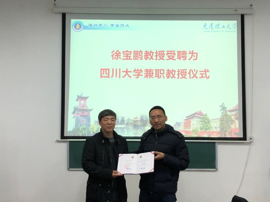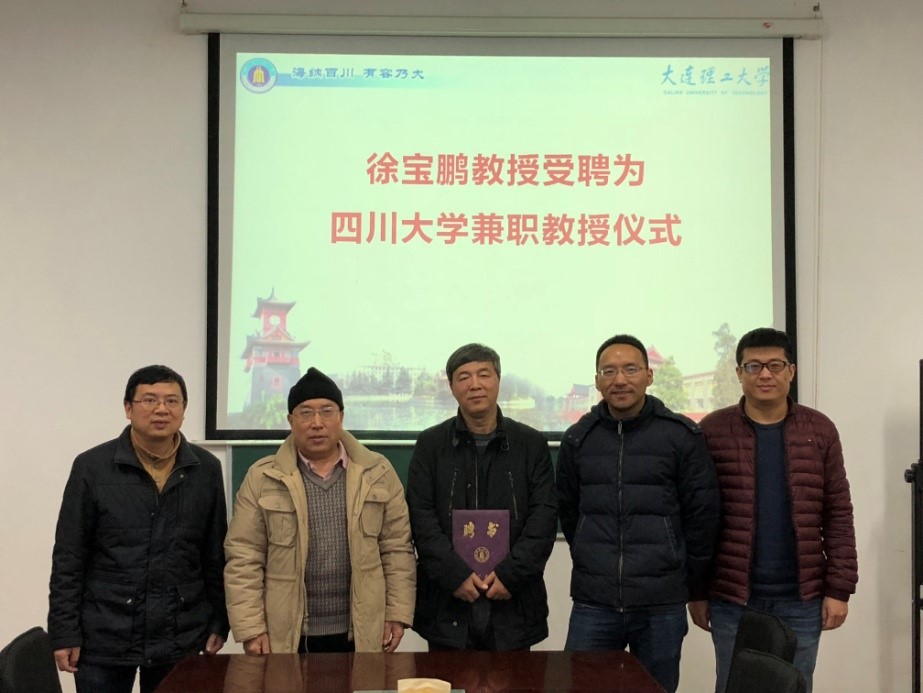 于2018年12月25日上午,在望江校区西二教420会议室举行了徐宝鹏教授聘任仪式。仪式由学院教授委员会主任李象远教授主持,学院副院长钮大文教授为大连理工大学徐宝鹏教授颁发了聘书。
