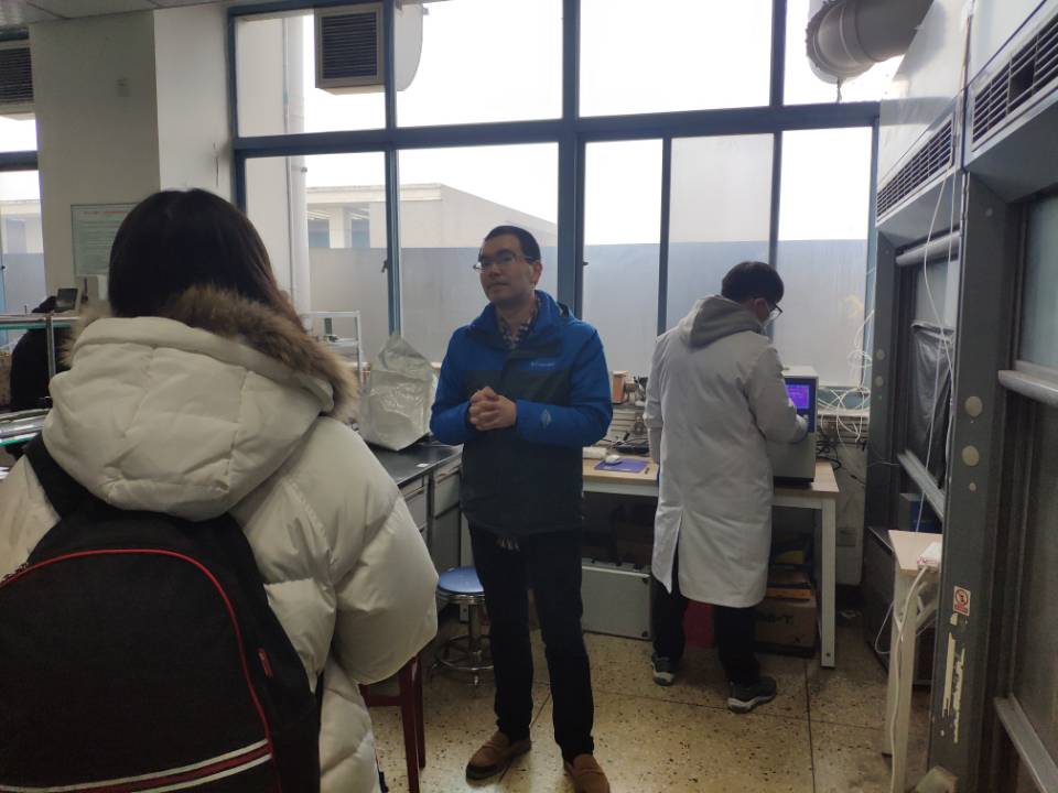 在介绍了研究室的概况后,刘长军副教授带领学生们参观学习了低碳技术与化学反应工程实验室。在参观实验室的过程中,刘长军副教授和团队里的其他老师们结合介绍里所讲的知识理念,向同学们仔细讲解了相关化学反应器械装置及其功能应用,并结合其在生产实际中的作用,加深学生们对低碳技术与化学反应工程的认识。同时,刘长军副教授还向同学们介绍了许多团队自制的仪器装置及研究方法,并不断解答学生们提出的问题,倡导同学们要多思考多实践,努力寻找自己感兴趣的研究方向。