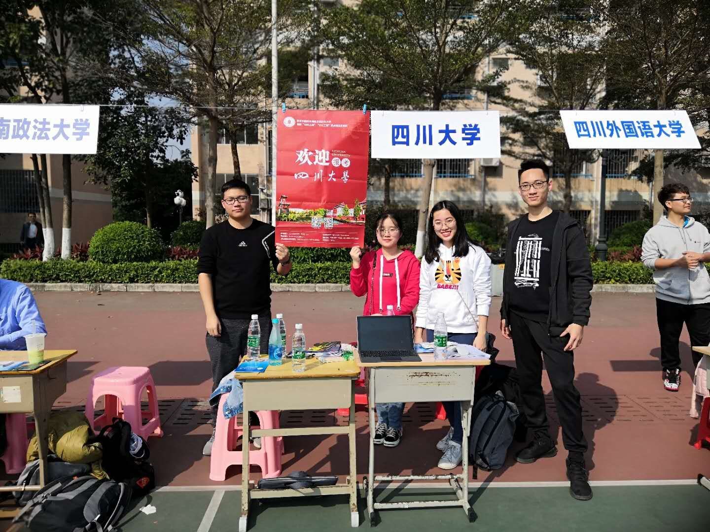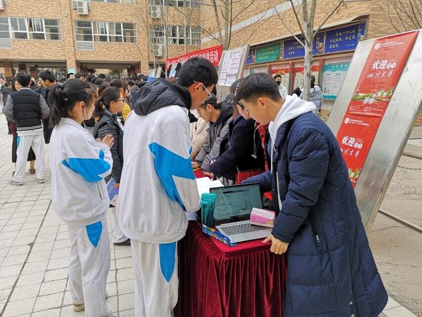 的总体情况和招生政策,组织开展形式多样、内容丰富、主题鲜明的招生宣传活动。在南开中学中,志愿者们通过主题班会,将自制的视频展示给学校高三年级的学生,向同学们介绍学校办学状况与特色专业,以及各专业的就业情况。在绵阳市科学城第一中学,志愿者们利用自己准备的讲稿,将川大完善的育人体系与具有特色的人才培养方式介绍给高三年级学生,鼓励学弟学妹们报考川大,并表示以后随时为他们解答疑惑。据统计,各种宣讲会、班会、政策解答会共计20余场,参与高中生近500余人,目前还有部分团队正在活动进行中。