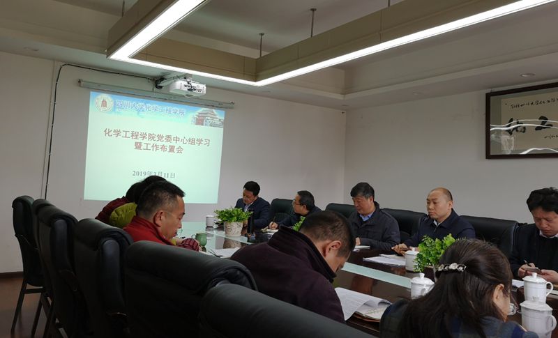 2019年3月11日上午,学院在望江校区化工楼235会议室组织开展党委中心组学习研讨会。学院全体领导班子成员、工会主席、各教职工党支部书记、各系(基地、中心)主任、院长助理和科级干部参加会议。会议由学院党委书记庞国伟主持。