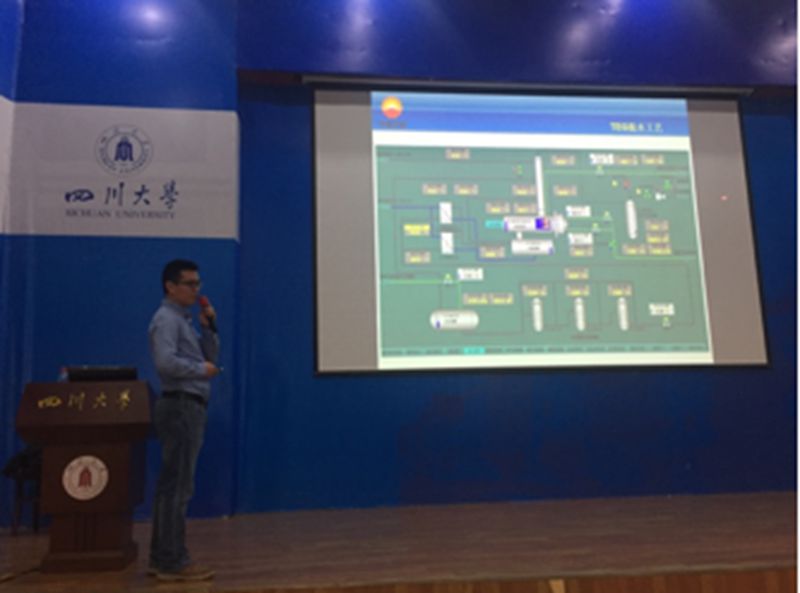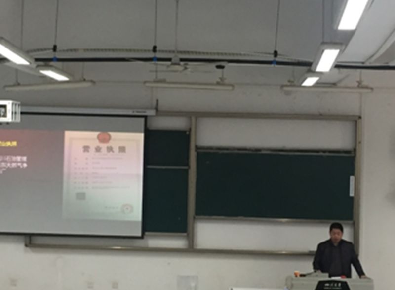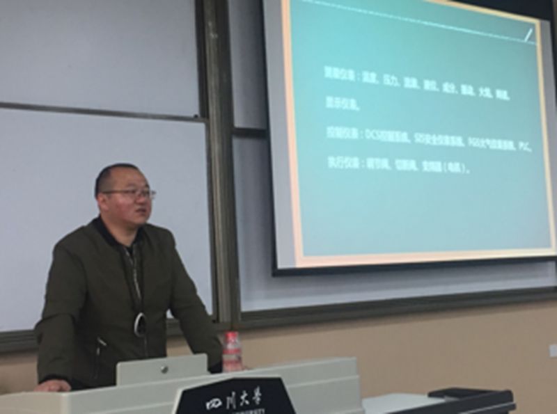 ,目前担任重庆天然气净化总厂大竹分厂厂长的张小兵向同学们分享了其成长历程,并详细讲解了天然气净化的工艺流程。重庆天然气净化总厂设计研究所仪表工程师彭云则向大家介绍了天然气净化装置中使用的各种仪表以及企业在控制智能化与数字化的巨大改进,展示了现代化工企业的技术特点。最后,重庆天然气净化总厂企管法规科副科长袁伟用轻松诙谐的语言给大家讲解了企业管理方面的知识,在宣传污污漫画的同时,让同学们对企业管理有了不一样的理解。