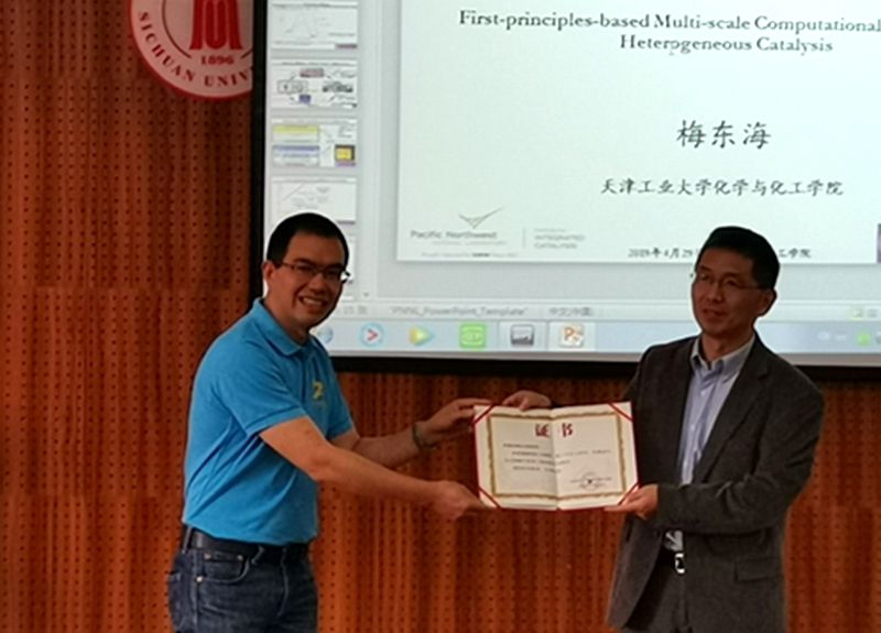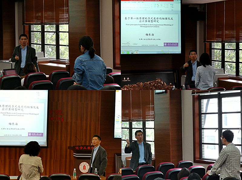 师生做了题为《基于第一性原理的多尺度非均相催化反应计算模型研究》的学术报告。学院唐盛伟副院长、袁绍军主任、鲁厚芳教授、张永奎教授、杨华清教授、任海生副研究员、唐思扬副教授等教师和污污漫画