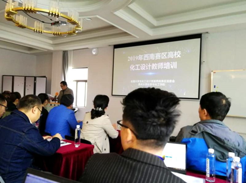 5月10日上午,来自四川、重庆、云南、贵州等地30所学校80余位老师齐聚贵州,贵州大学化学与化工学院副院长肖仁贵教授主持,贵州大学化学与化工学院院长林倩教授致辞,热情洋溢地对各位专家和老师表示热烈的欢迎。简短的开幕式和集体合影后,化工设计教师培训会正式开始。