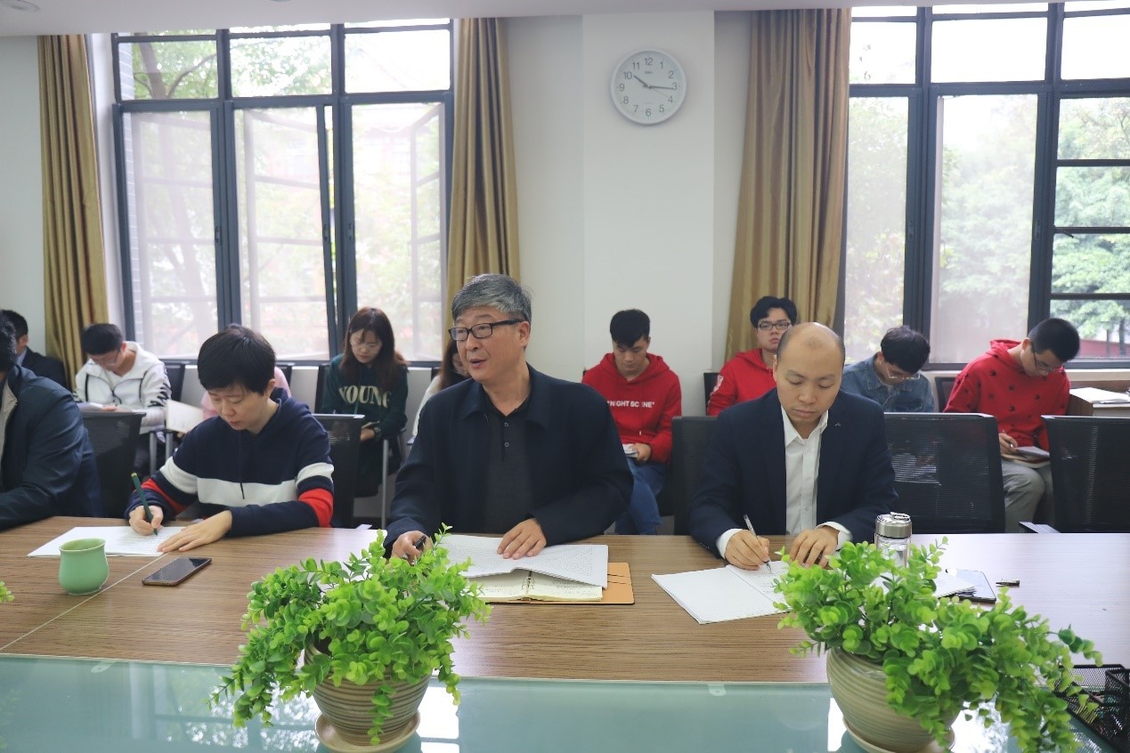 在望江校区化工楼227会议室组织开展“不忘初心、牢记使命”主题教育党支部工作推进会暨党支部书记培训会。学院党委书记庞国伟、党委副书记兼纪委书记李天友、党委副书记姜利寒,学院党政办主任李晓燕、党建管理科科长高敏和全体支部书记参加此次会议。