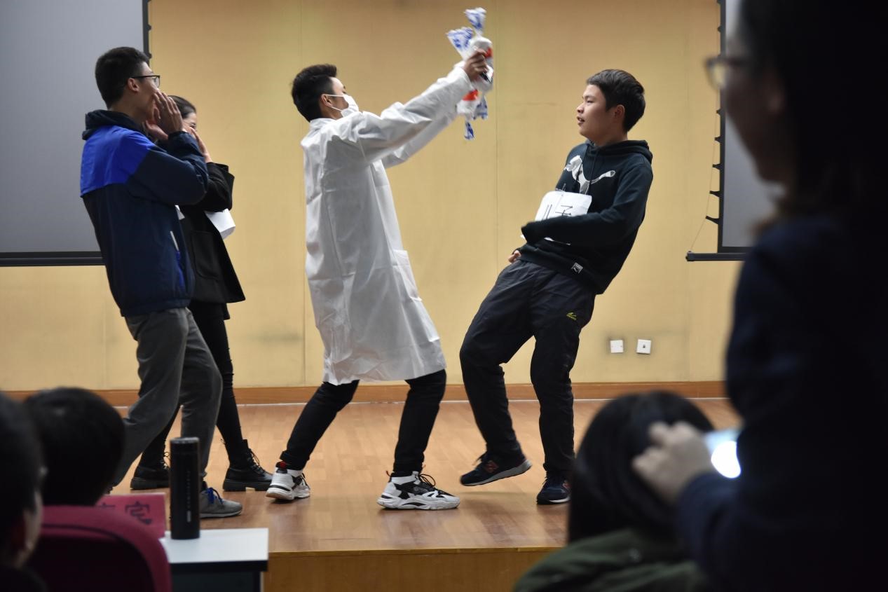 按照比赛流程,各班首先进行调研成果介绍,随后进行班级才艺表演展示。其中,绿药301班以“磷石膏资源回收与再利用”为主题分享调研报告,并采用小品回顾 “铁人”王进喜的一生,展现了上世纪60年代石油化工人“有条件要上,没有条件创造条件也要上”的无比坚定的信念,表明延续其品质的一代又一代化工人必将续写化工的华章。绿药306班以生动形象的图片展现了水凝胶的特性与应用,然后以原创《骄傲化工人》的诗朗诵震撼全场,每个人满怀豪情,心怀梦想,向化工、向祖国大声喊出自己的赤子之心,以新时代中国化工人的姿态向世界发出挑战,向中国化工梦进发。绿药303班对化工学院钟本和教授课题组和实验室进行深入介绍,共同感受磷化工的神奇。充满创意的抖肩舞,有趣而不失意义,调动了全场气氛,将此次活动推向高潮。
