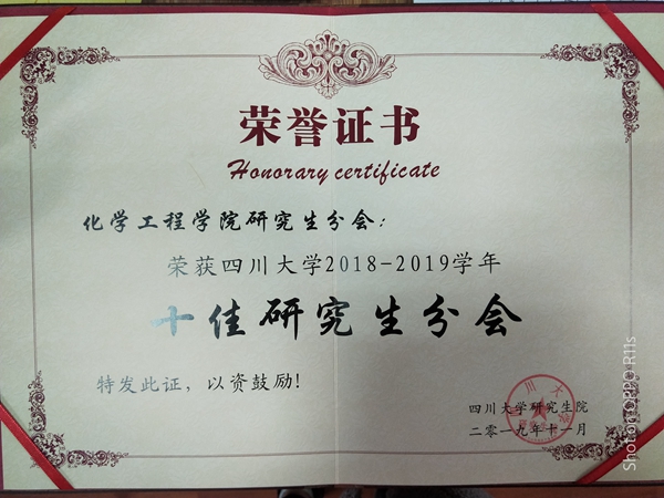 2018-2019学年十佳研究生会”荣誉称号。