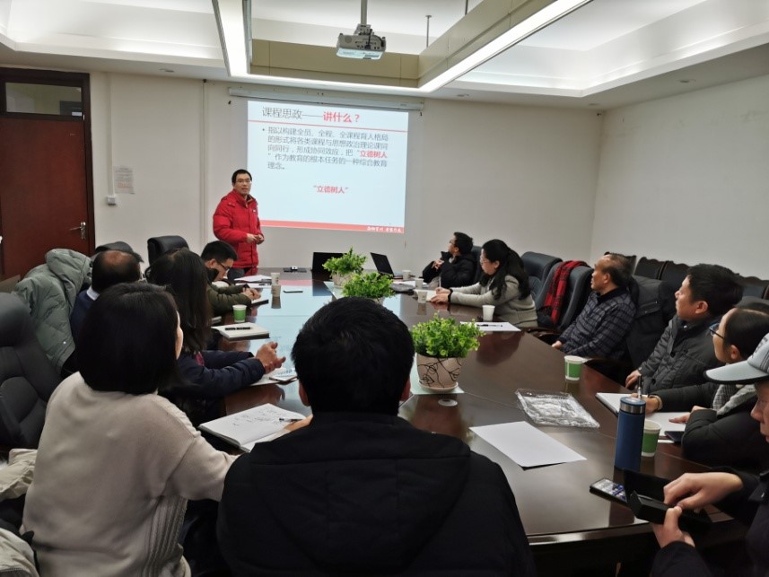 会上,程远贵老师首先对2019年度化工原理实验室的工作进行了总结汇报,包括实验教学、实验室建设、化工实验竞赛及实验中心的其他工作情况等,同时结合现状对化工原理实验室未来的工作重点进行了展望。随后,刘长军老师从“为什么讲、讲什么及如何讲”三方面向大家介绍了化工原理课堂思政的重要性及如何做课堂思政建设工作,强调避免喊口号而应结合身边的人和事,举以实例进行讲解,从而激发学生热爱国家、热爱本专业。