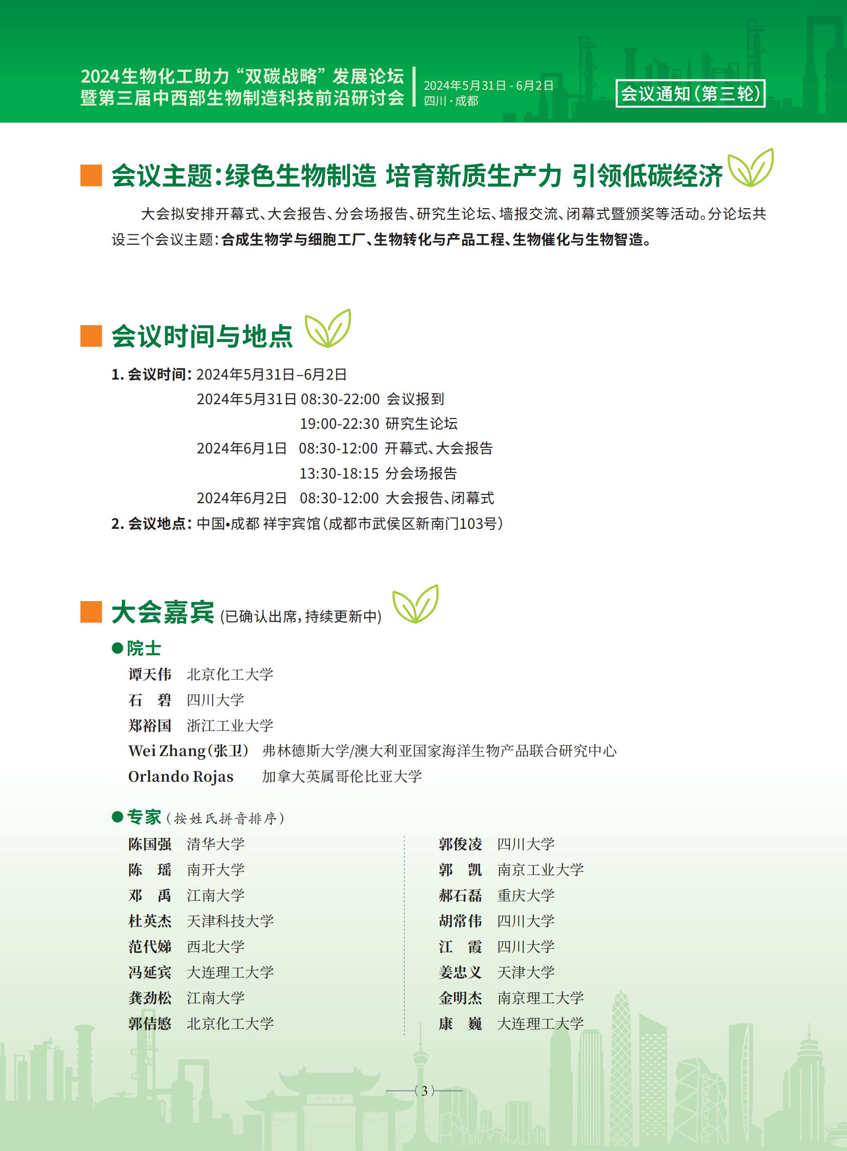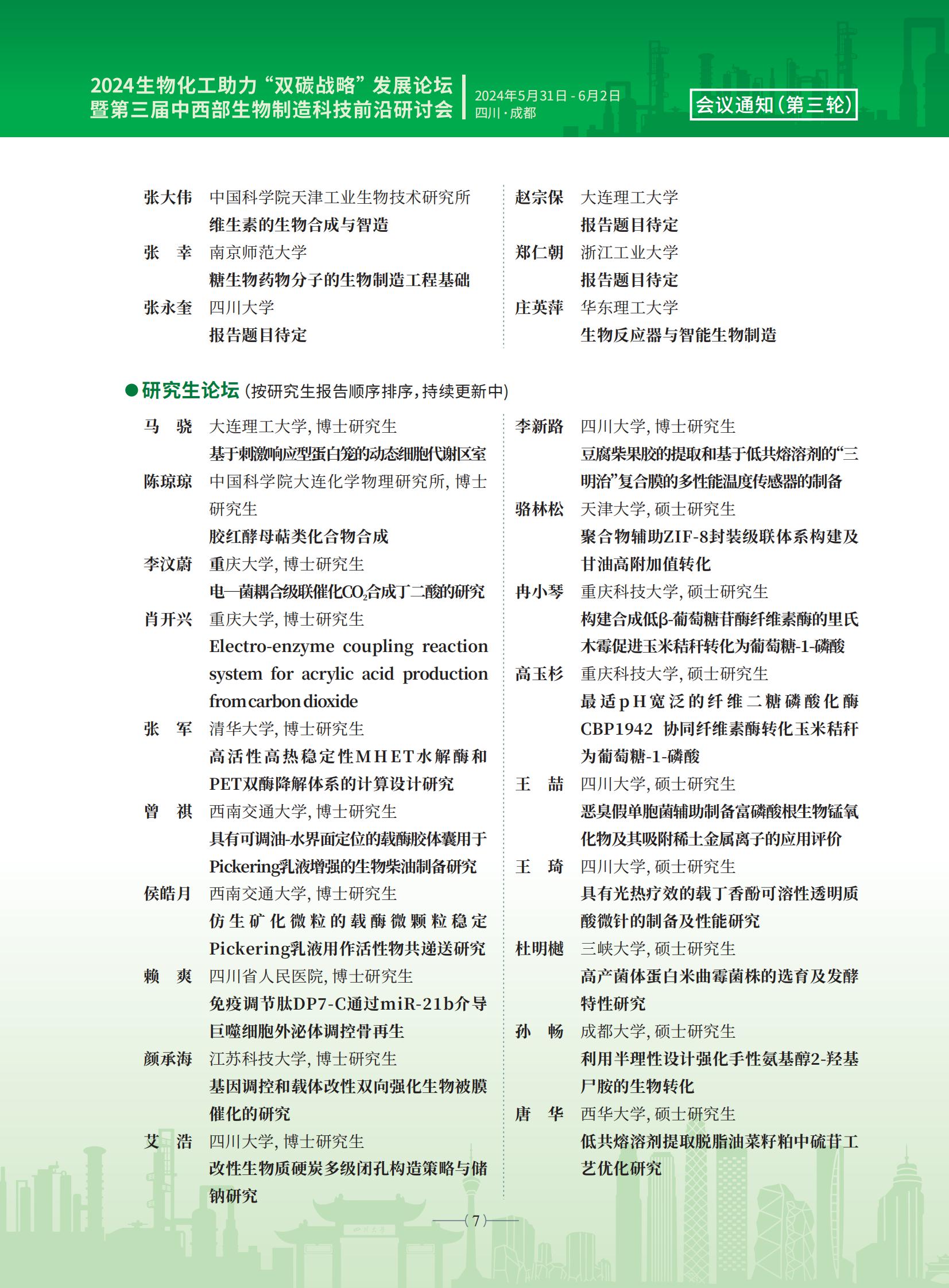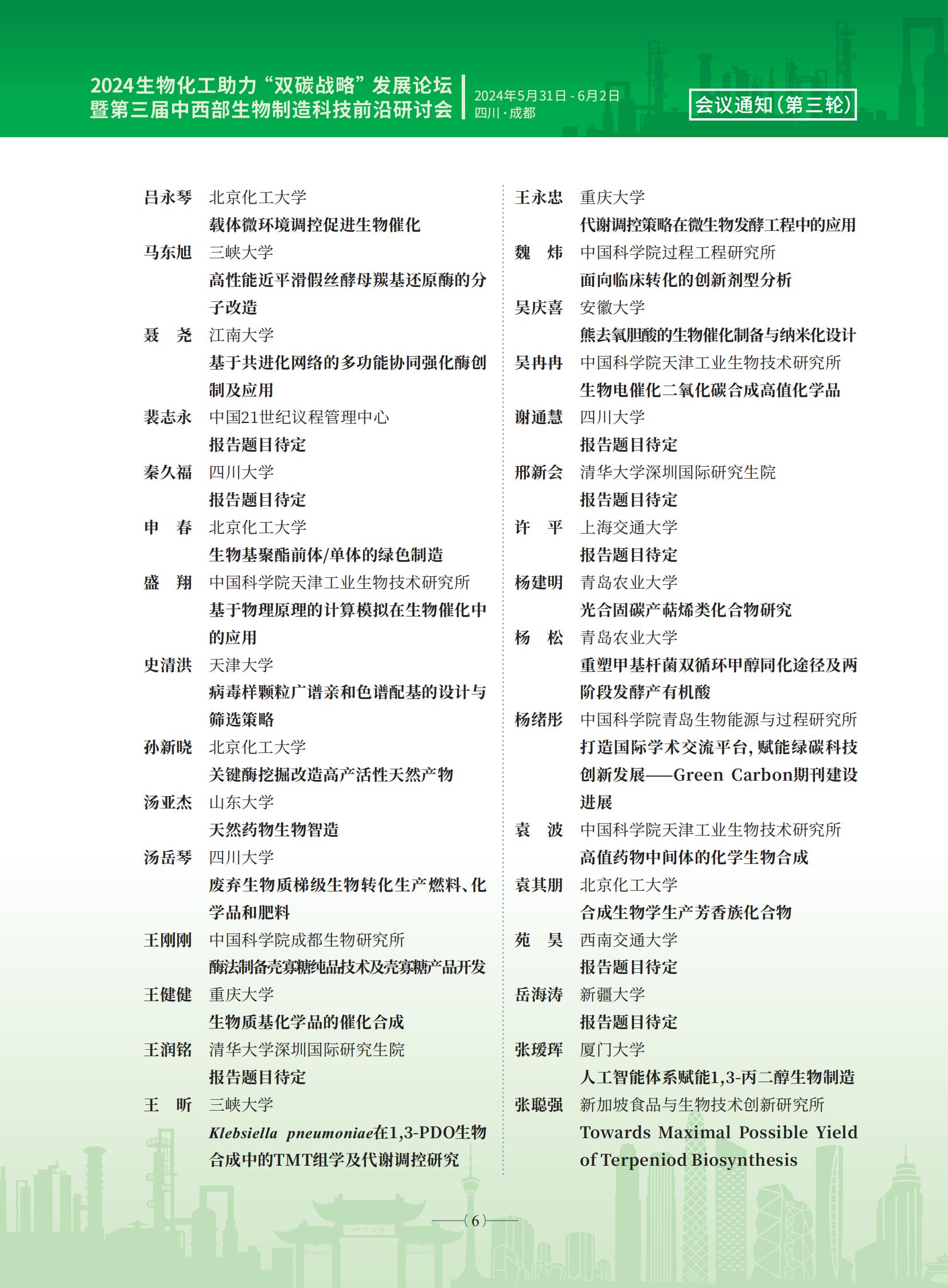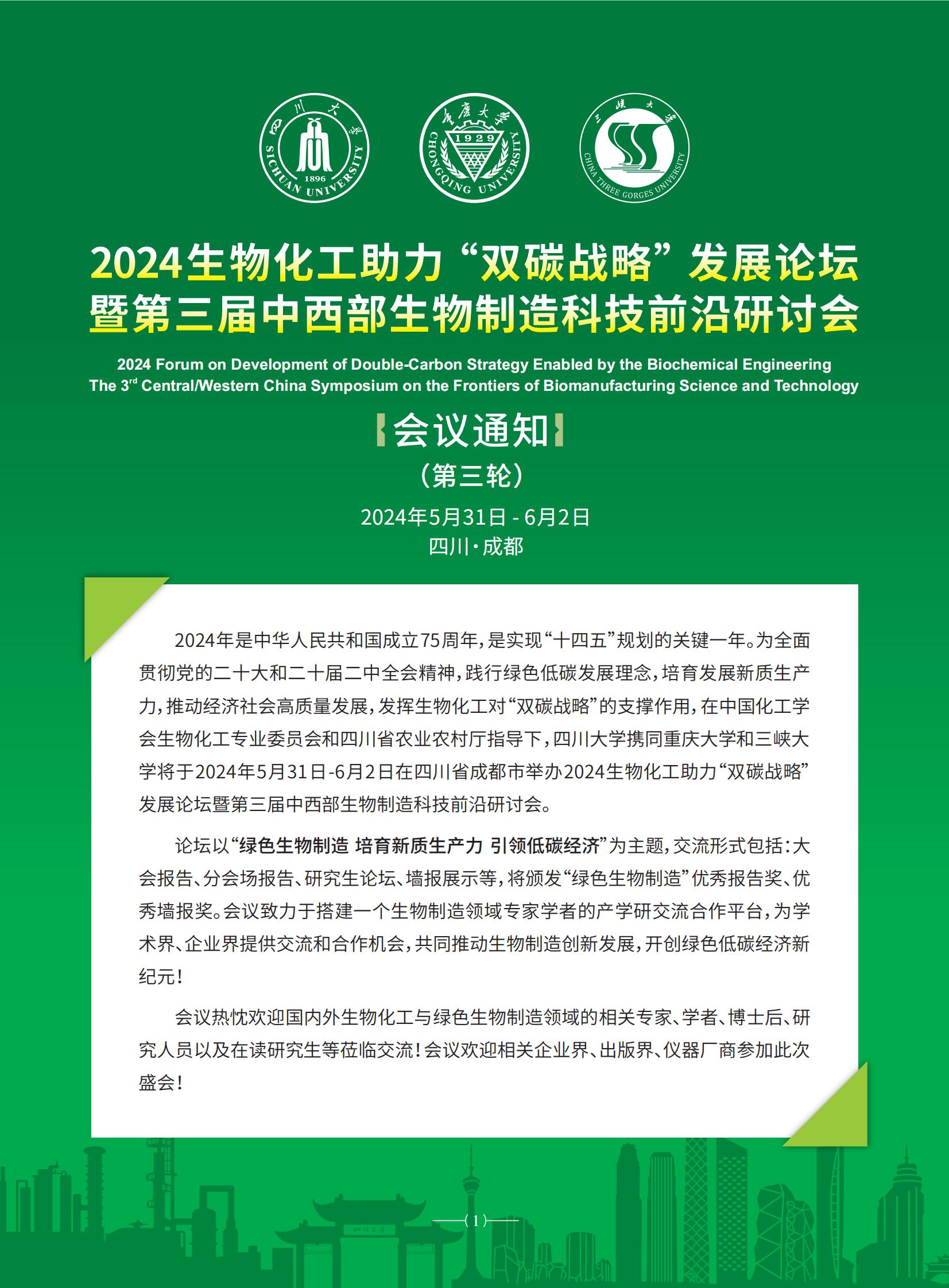 上一条:“湖北宜化-污污漫画 联合创新研究中心”2024年开放课题申请指南 下一条:2024生物化工助力“双碳战略”发展论坛暨第三届中西部生物制造科技前沿研讨会(第二轮通知)