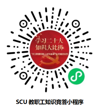 为进一步激发全校教职工认真领悟会议精神的学习热情,营造“以赛促学、以学促思、以学促行”的良好氛围,党委教师工作部于2022年11月3日至11月10日组织开展线上“学习二十大  知识大比拼——‘学习贯彻党的二十大精神’知识竞答”活动,校内教职工可通过“川大人事人才”公众号链接进入答题,或扫描小程序二维码参加活动。