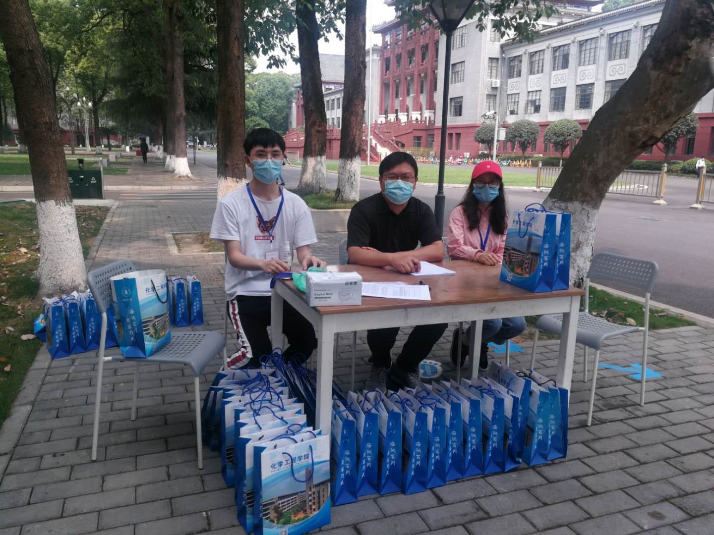 2020年5月6日,根据四川省教育厅以及学校下发的返校工作整体方案,川大学子正式分期分批、错时错峰返校,化工学院也迎来了第一批学生返校高峰。在学院总体部署和安排下,全面落实学校关于学生复学返校工作会的安排,提前做好了迎接680余名学生返校的准备工作。在学院规划建立了学生报到点,撑起遮阳伞,并为报到注册的化工学子们准备好了装满口罩、消毒液等各种防疫物资的健康包。学院教学楼前,新添置的移动消毒站和专门设置的出入口,保证了同学们安全有序的进入学院。在党员教师的示范带动下,化工系的全体教职工积极参与学生返校志愿者工作,每天3班轮流值守,分工合作、相互配合,细致认真做好返校学生的身份核验、体温检测、防疫消杀、健康码状态核实、行李搬运等志愿服务工作,为同学们返校提供全天候的服务。更重要的是,志愿者老师们关心返校的学生的心理和学业情况,为学生提供返校学习生活指导,为返校学生第一时间送去了安慰和温暖,以实际行动诠释了化工系党员教师良好的师德师风和责任担当。