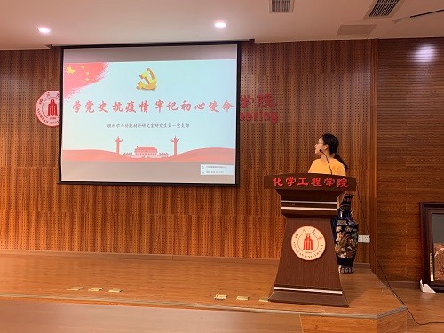 2020年07月06日19:00,膜科学与功能材料研究室研究生第一、二党支部在化工学院313召开“学党史 抗疫情 牢记初心使命”组织生活会,会议由支部书记李新娇同志和文国宇同志主持召开,谭昕玥同志作为本次组织生活会宣讲员。