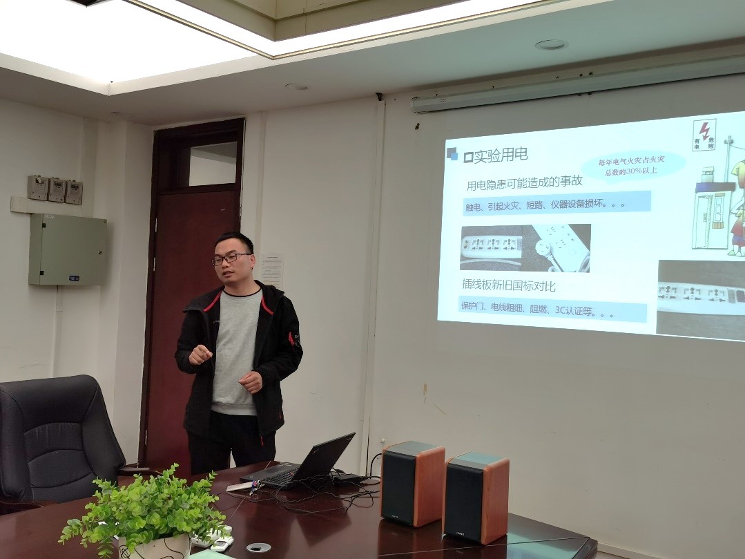 随后,工程实验教学中心王袁隆老师从安全的概念、安全主要包含的方面和内容以及与工作息息相关的实验室安全和办公室安全用电等方面进行了详细介绍。尤其结合高校发生的一些安全警示教育案例对安全用电意识和注意事项进行了强调。
