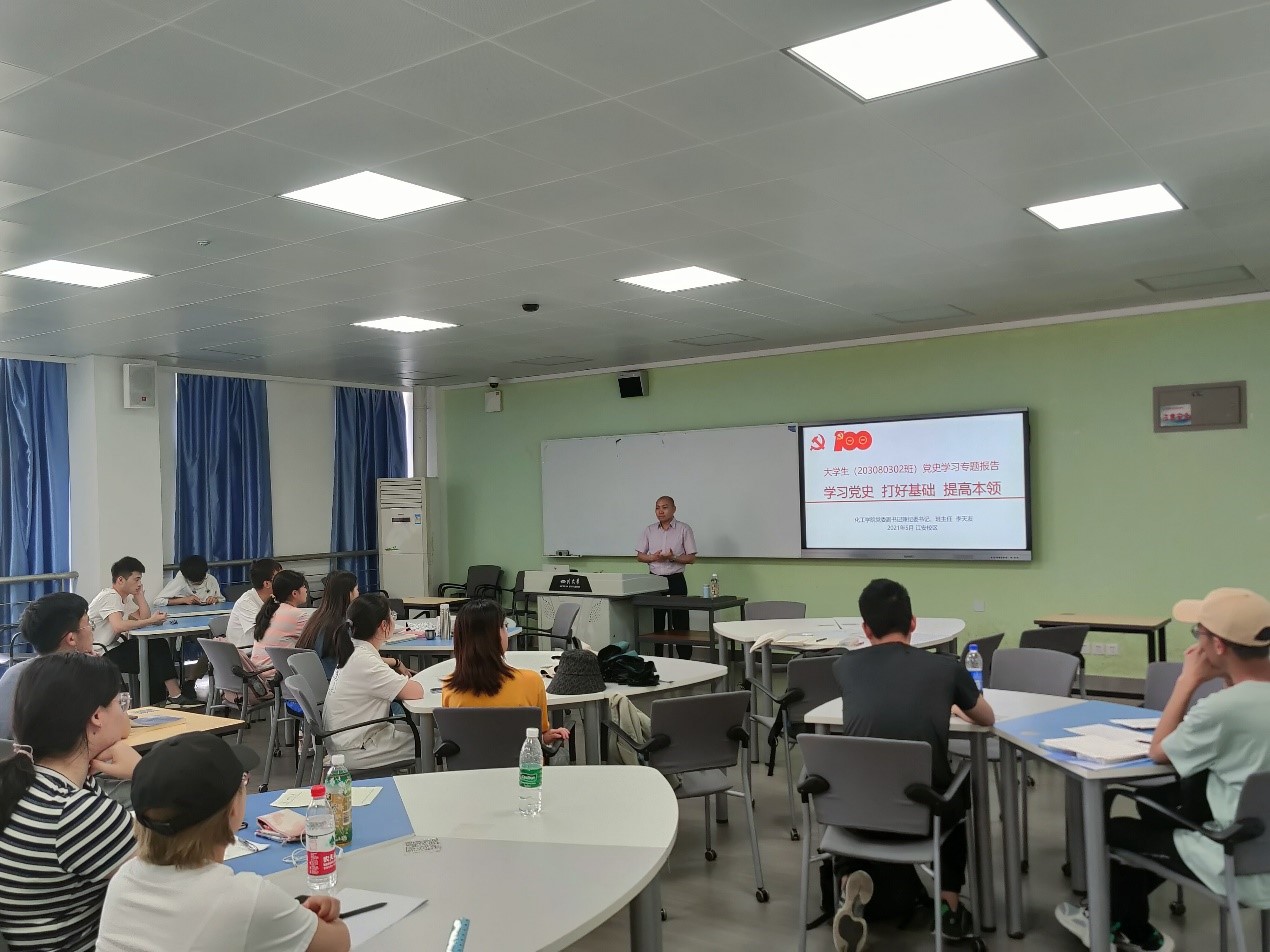 图为李天友副书记为同学们开展党史学习教育辅导报告