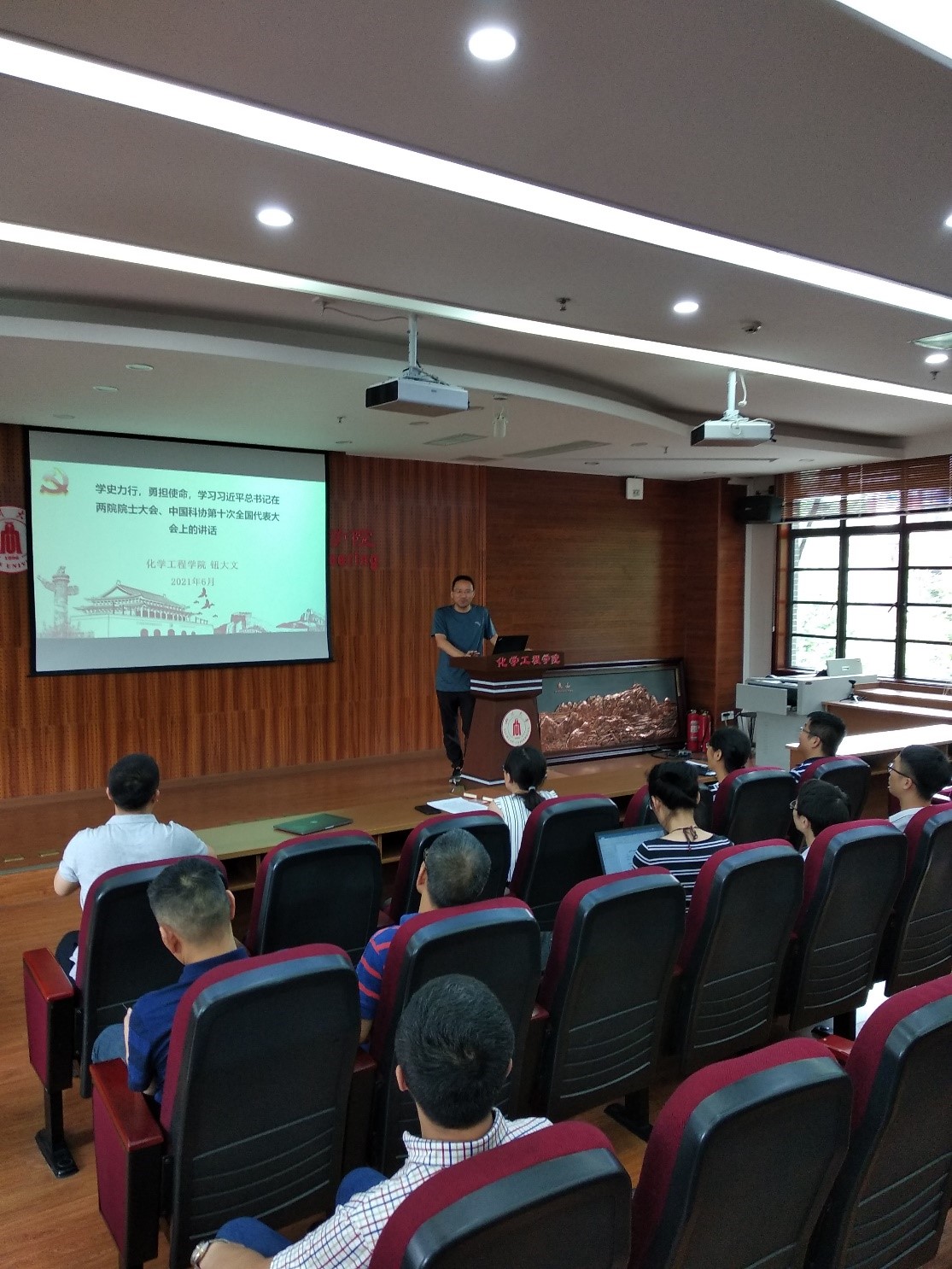 制药与生物工程系党支部在学院313会议室开展了党史学习教育专题党课和专题组织生活会。支部书记巨晓洁教授主持活动。学院副院长、院党委委员钮大文教授主讲题为“学史力行,勇担使命”的党史学习教育专题党课。制药与生物工程系党支部全体党员参加会议。