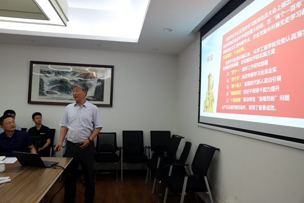 随后,学院党委副书记姜利寒对依托课堂教学、班团活动、支部组织生活和志愿服务等教育引领学生爱党爱国爱社会主义的情况进行了介绍。化学工程系党支部书记谢锐介绍了化工系党支部发挥战斗堡垒作用,用党史学习教育推动建设一流师资队伍的情况。2019级博士生、研究生党员罗杰从参加支部活动,开展党史学习教育宣讲,发挥党员先锋模范作用等方面分享了自己的心得体会。