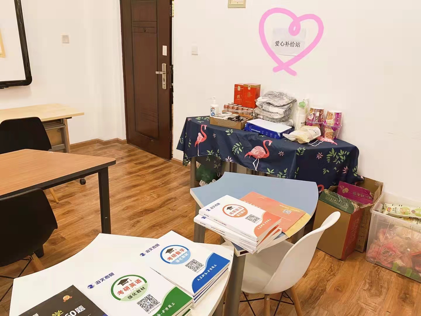 江安校区西苑三舍的活动室变得明亮起来,考研备考的同学们开始了他们忙碌而充实的一天。这是一间特别的“社区自习室”,室内有空调、热水、网课多媒体设备、整齐的桌椅、以及日常的学习用品和食物填满的“爱心补给站”,旨在为化工的考研学子提供便利、舒适、温暖的一站式学习环境,让同学们可以心无旁骛地专心学习,摆脱冬日气温低、图书馆占座不易等烦恼,全力冲刺理想的学校。
